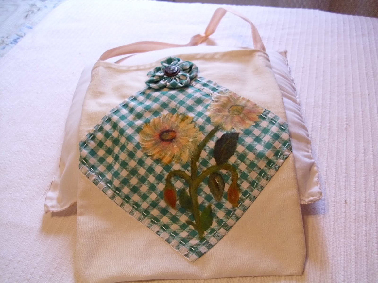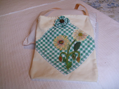 Apliquei um tecidinho pintado e uma flor de fuxico