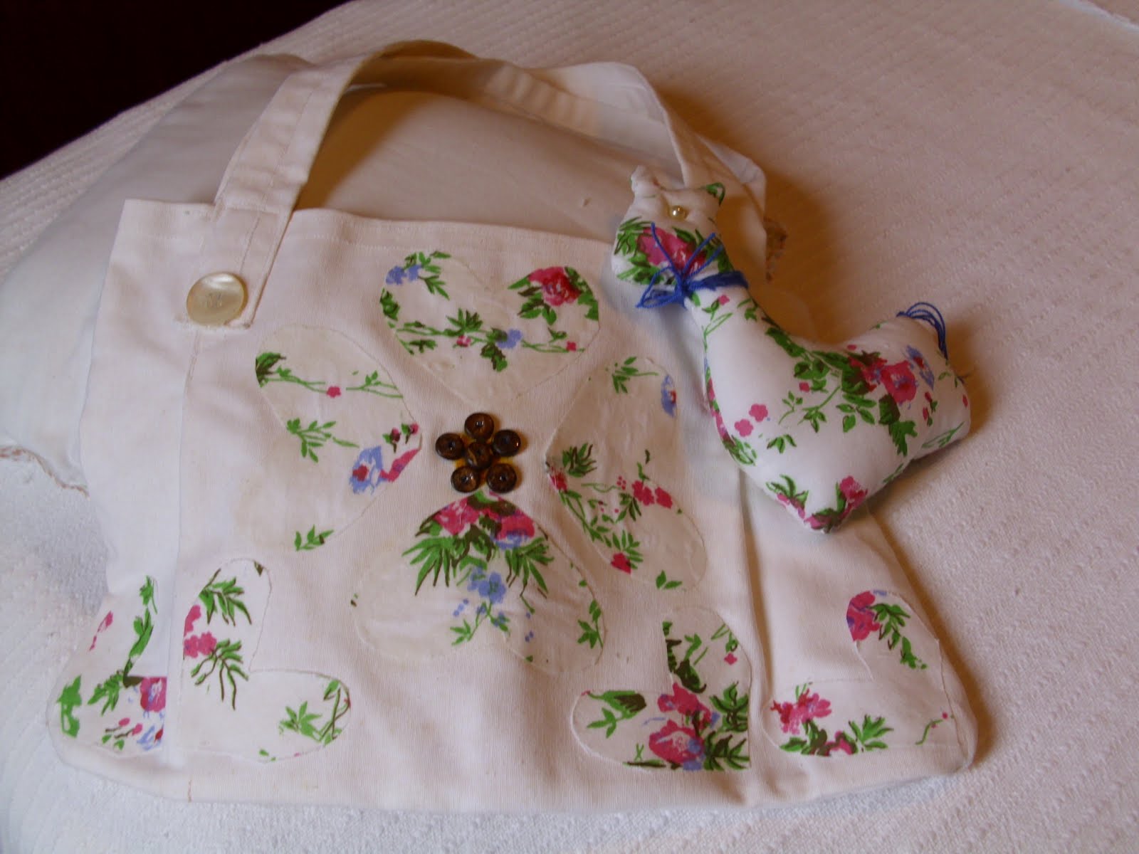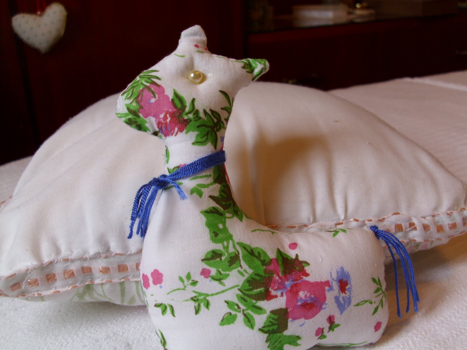 Esta outra bolsinha fiz para presentear, e coloquei junto uma girafinha feita com o tecido florido.