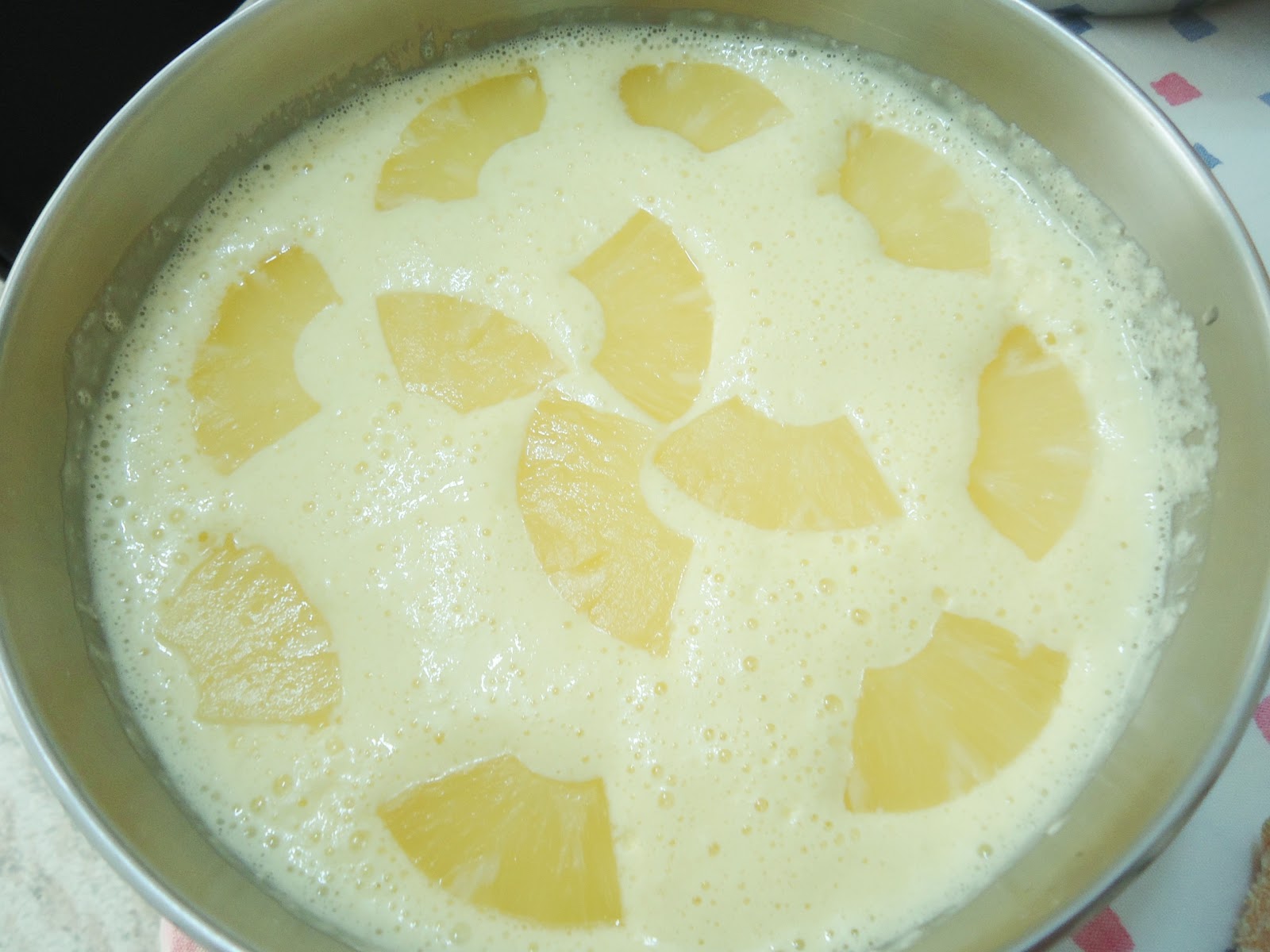 Acrescente o abacaxi picado, reservado e leve para gelar.