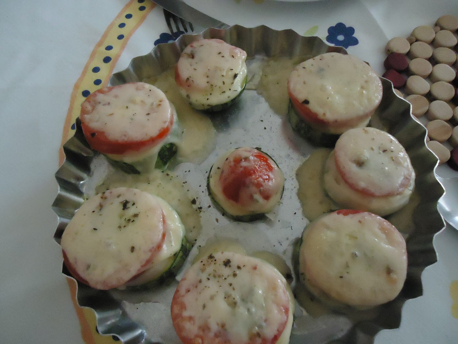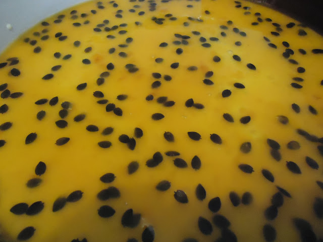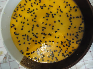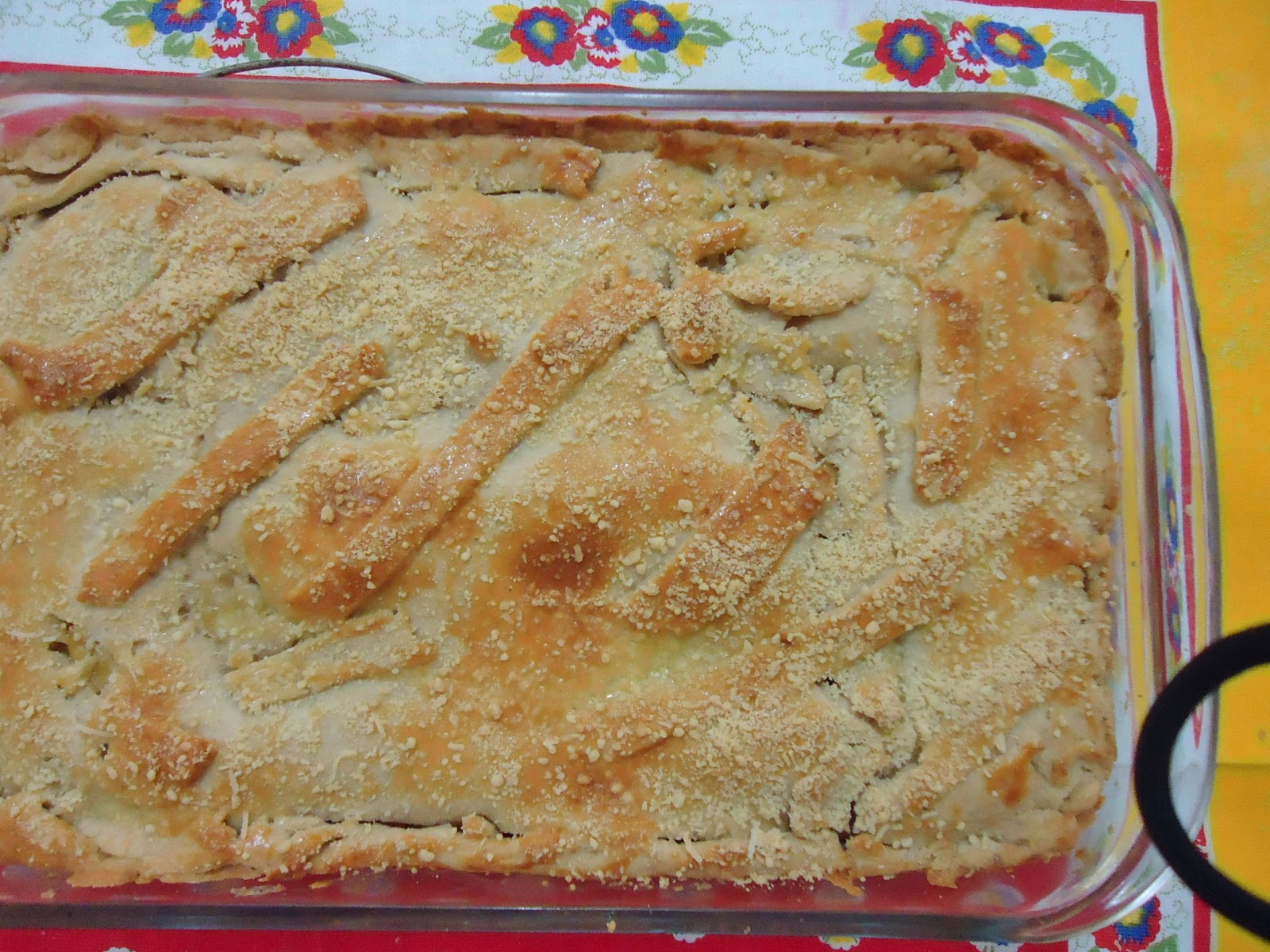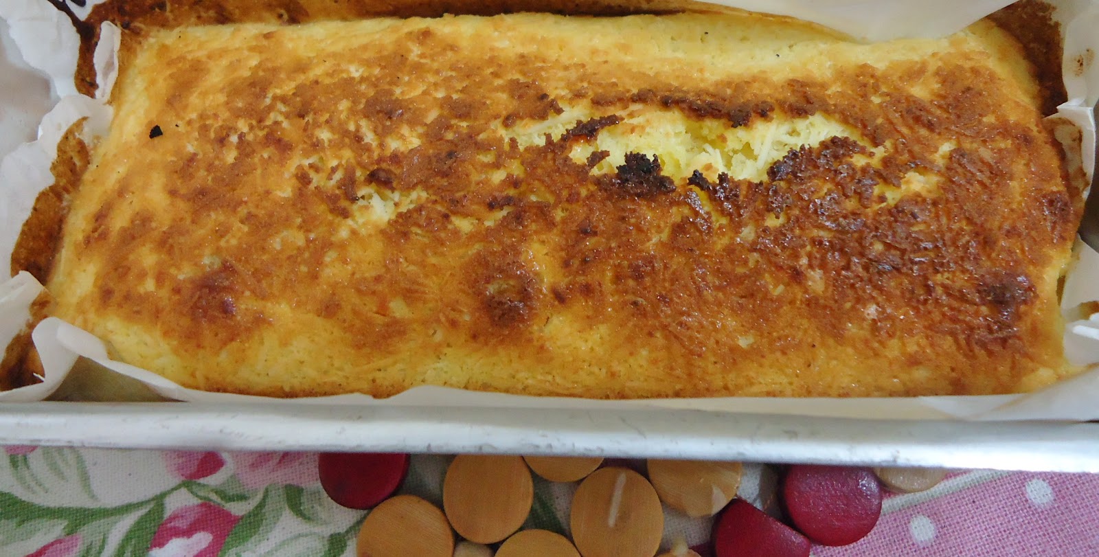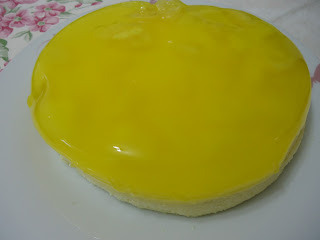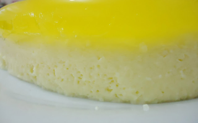 Coloquei num refratário redondo e ao fim resolvi desenformar, ficou assim com a gelatina por cima.