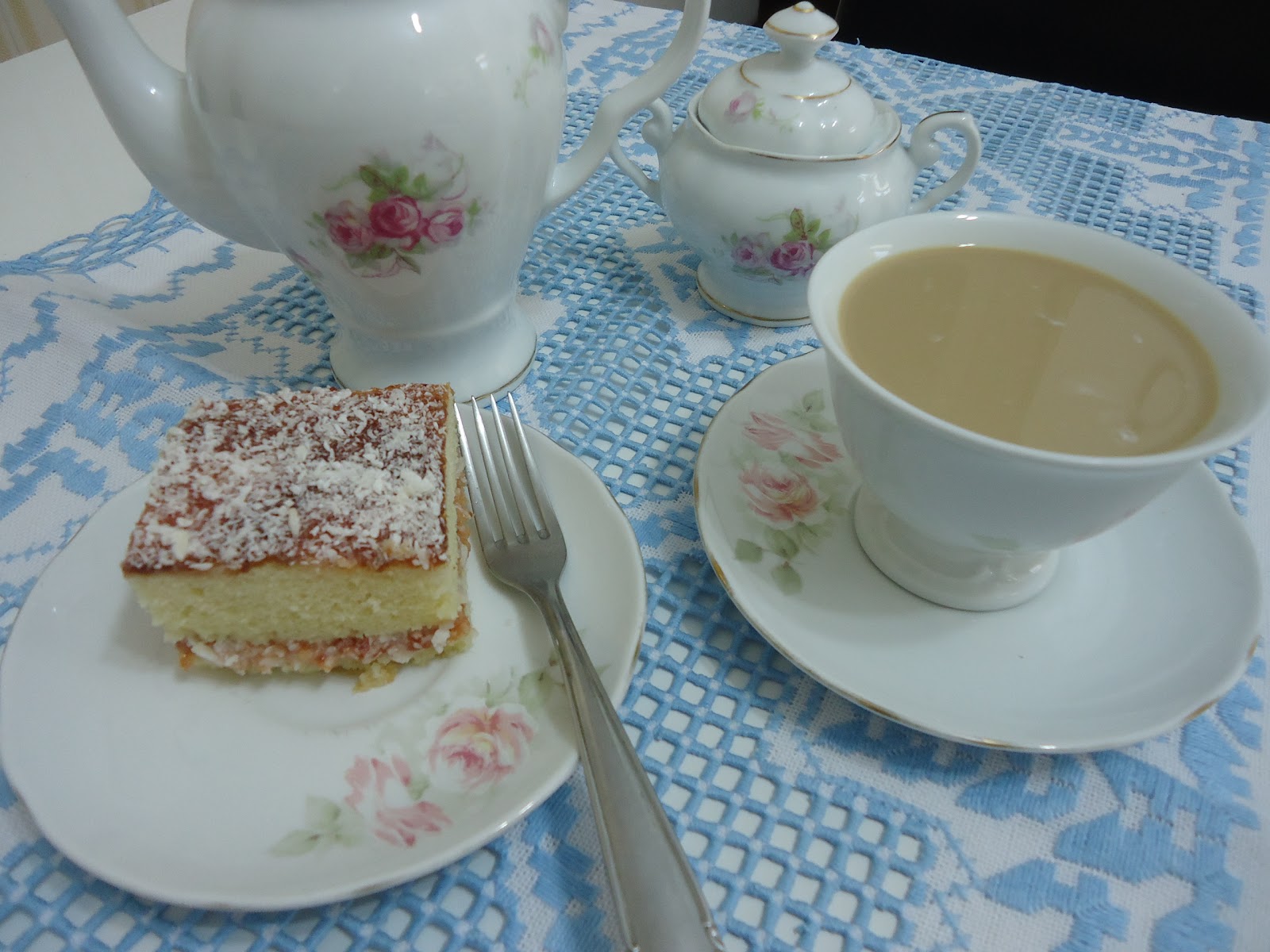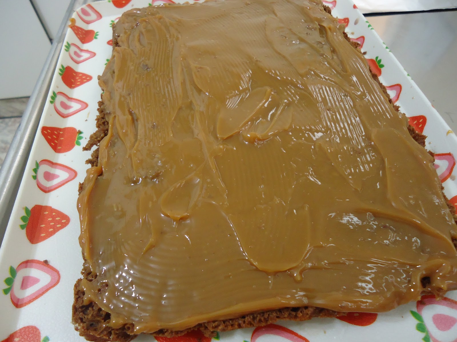 Fiz dois em forma de bolo inglês e deixei um simples só recheado com doce de leite, pois minha mãe não gosta de chocolate.